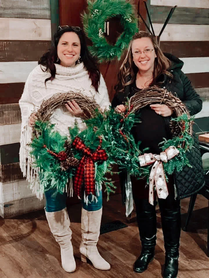 At Sip & Spruce, we specialize in seasonal wreath-making workshops held throughout New Hampshire, Southern Maine, and Northeastern Massachusetts. Our events include both public open workshops and private parties tailored to your group’s size and preferences.